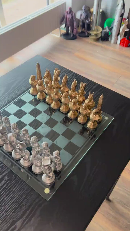 Egyptian Chess Set | Gold & Silver Pharaoh Pieces | Luxury Handmade Chess | Ancient Egypt Art | Statement Home Decor