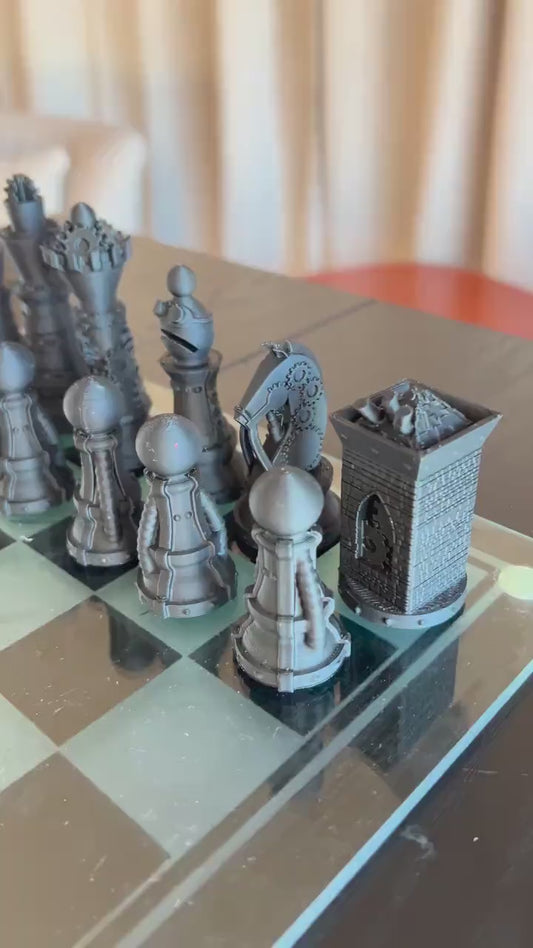 SteamPunk Chess Set | SteamPunk Designer Chess Pieces | Modern Architectural Design | Luxury Chess Gift | Contemporary Home Decor