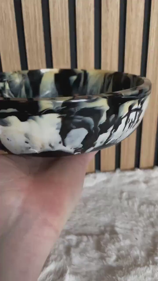 Marbled Bowl Handmade | Modern Decorative & Serving Piece | Black White Cream Swirls | Unique Glossy Design | 3D Printed Recycled Materials