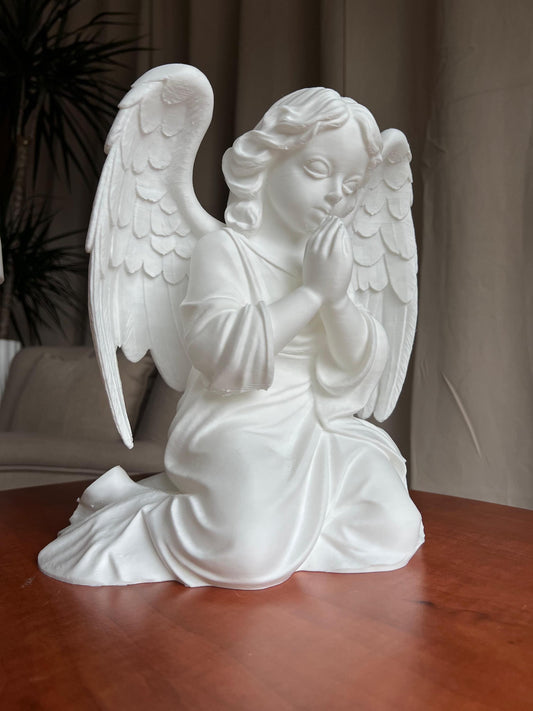 Elegant biddend engelbeeld | Wit harsbeeldje met delicate vleugels | Perfect als religieuze woondecoratie of als herdenkingsgeschenk