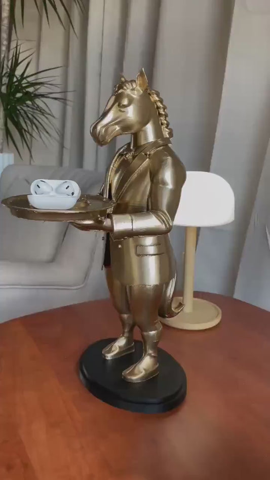 Paard Butler Beeldje, Telefoonhouder, Airpods opbergruimte, Horloge opbergruimte, Gouden Dieren Butler Beeldje, Vintage Serveerblad Houder