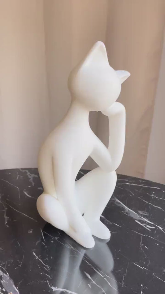 Denkende kat-beeldje - 3D-geprint minimalistisch katten-denkerbeeldje - schattige woondecoratie